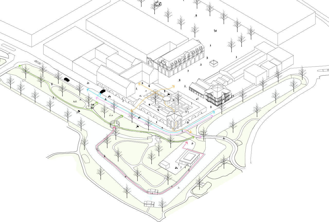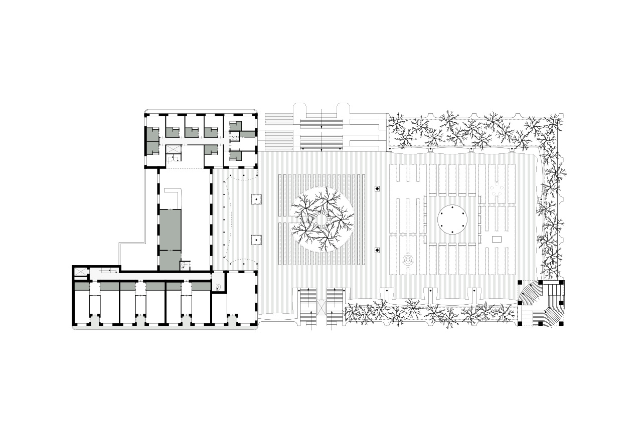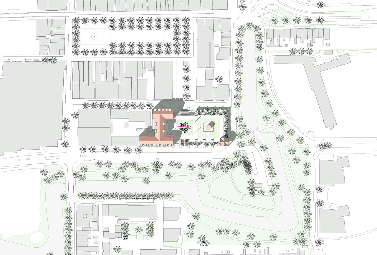 The key to the design is to construct a two-storey, semi-underground car park. At street level, the car park is surrounded by spaces for socio-cultural activities, so as not to be visible from the street. The car park will be prefabricated, possibly in wood, in order to construct quickly and with minimal disruption to parking capacity during construction.
