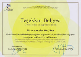 Ceylan organiseerde een workshop aan Karabük Universitesi. Hans hielp met de begeleiding van de studenten, hield een lezing op de universiteit en een openbare lezing in Safranbolu waar hij van de gouverneur een mooi aandenken kreeg.